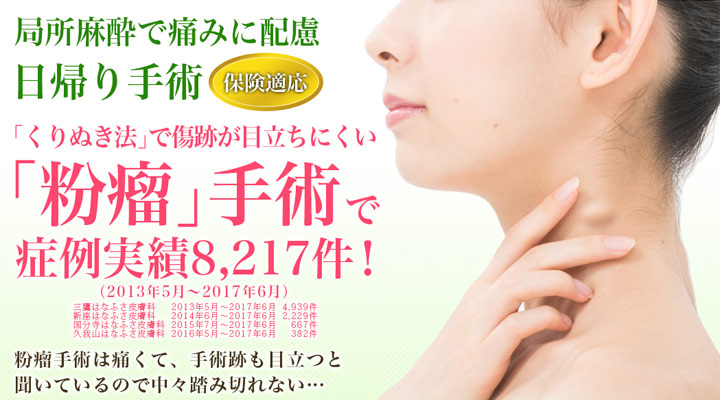 現在、京都院の他に東京エリアの三鷹市、国分寺市、杉並区久我山、池袋、新宿に5院、埼玉エリアの新座市、志木市、さいたま市大宮、朝霞市に4院の計10院を開業しております。当院では皮膚腫瘍に悩む方やかかりつけ院で手術を断られてしまった方、外見上のコンプレックスにお悩みの方が多くご来院されています。
